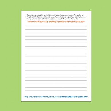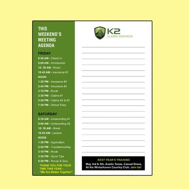 Do you have company info you'd like to print on your 8.5" x 11" notepads? Maybe you have an agenda for the meeting or you have other information you would like to distribute. This is the option for you.